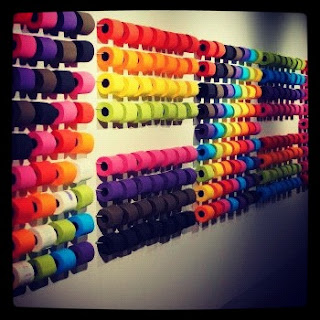 Arte con rollos de papel de colores. La empresa Renova presume de baño, donde los usuarios pueden escoger entre toda esta gama de tonalidades de papel higiénico, formando así un mural de color expositivo.