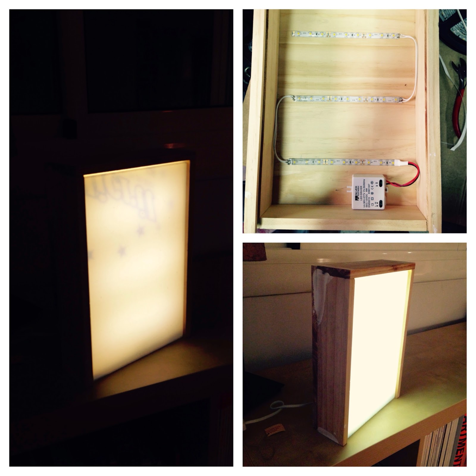 Le diseñamos e hicimos 6 cajas de luz a medida, de madera de pino pintada en blanco y con un circuito de leds que montamos en su interior para una perfecta iluminación sin sombras.