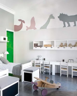 Otra forma para decorar la pared, es usando dos colores, y haciendo una silueta que las separe, como vemos en la siguiente imagen.