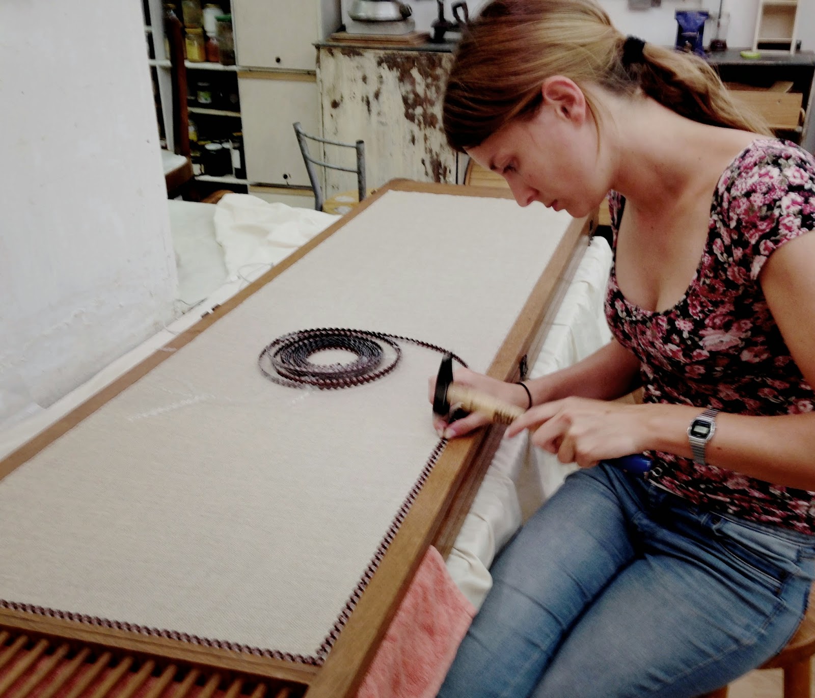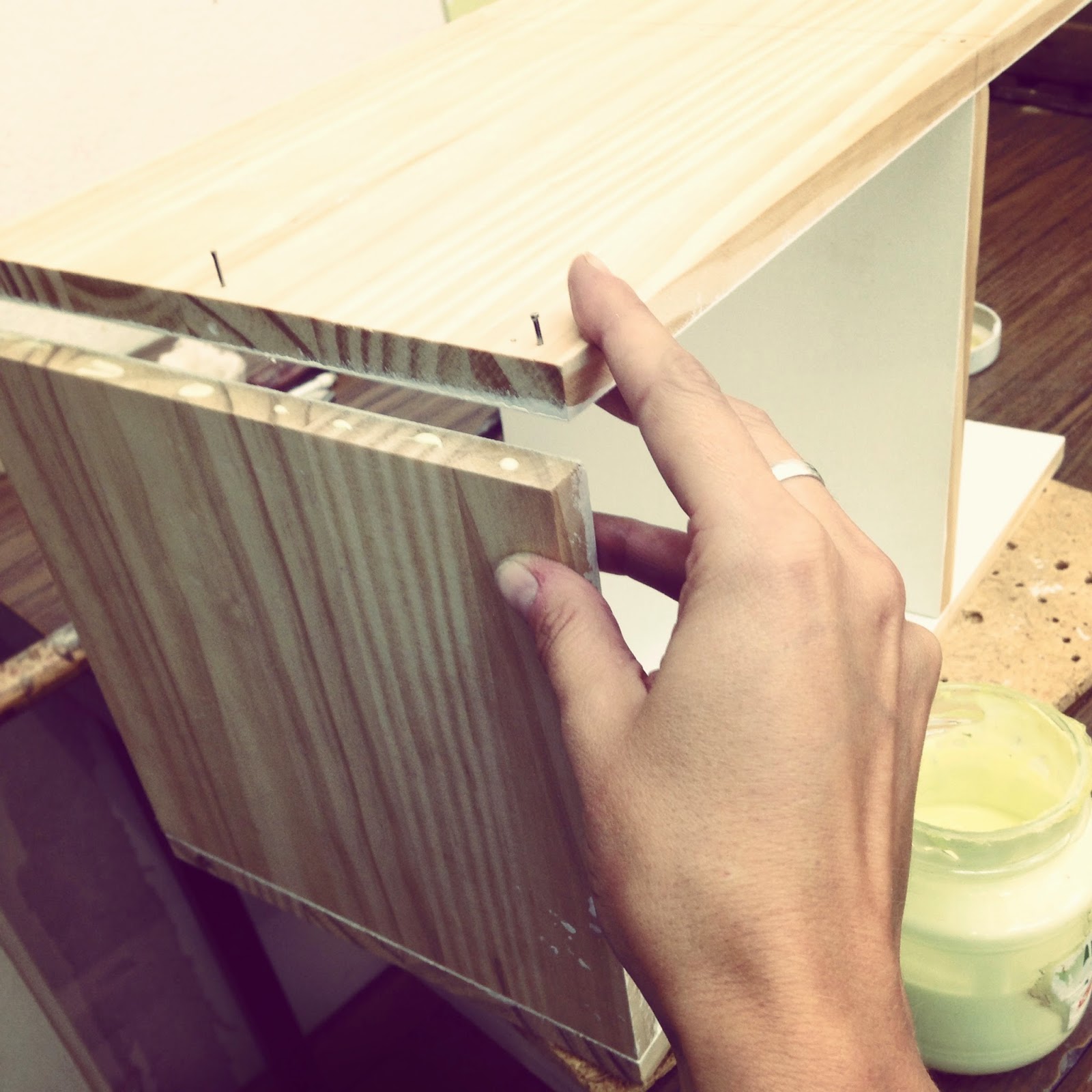 Posteriormente, empezamos a unir las piezas con clavos pequeños y cola.