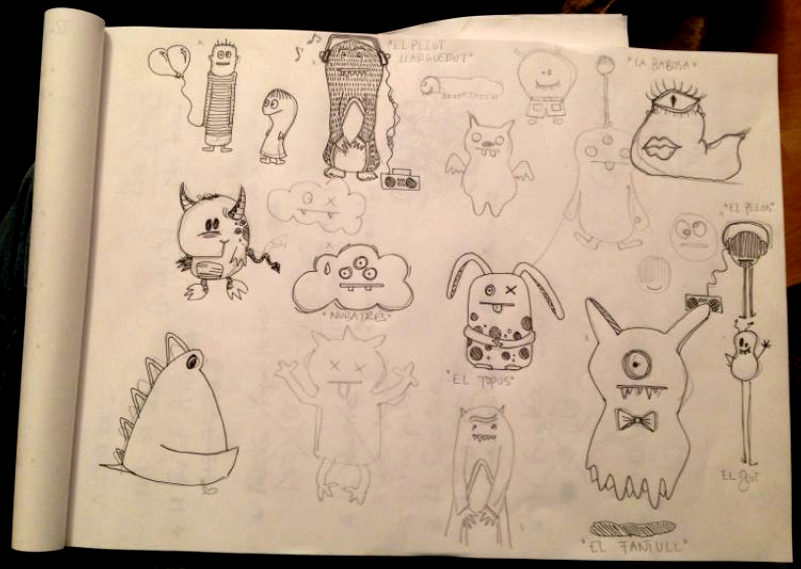 Una vez seleccionados los monstruos que quería, hicimos un skecth previo para decidir la colocación de los mismos.