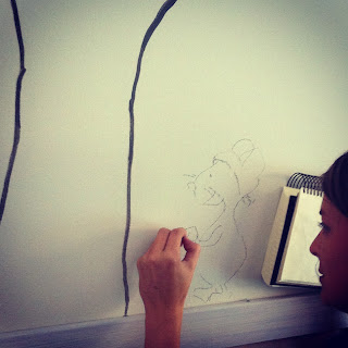 Luego con carboncillo se dibuja en la pared.