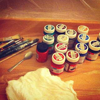 En una paleta, mezclas la pintura con un poco de agua y con un pincel fino re-dibujas la silueta. Hay que tener mucho cuidado a la hora de mojar el pincel, ya que pueden caer gotas en el dibujo. De modo que es aconsejable, tener siempre un trapo limpio en la mano para secar en el caso de que fuera necesario.