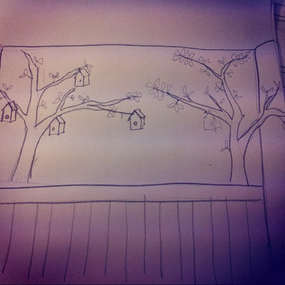 En este caso, decidimos dibujar unos árboles, dónde luego poder camuflar algún colgador en las hojas.