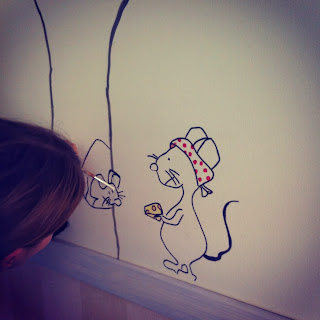 Era preciso que el mural tuviera unos ratoncillos, de modo que se aplica el mismo proceso. Primero se hace un sketch.